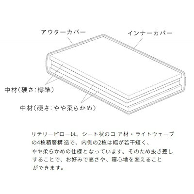 国産品 ピロー(枕) リテリーオーガニックコア材:ライトウェーブ中材組み合わせで高さが選べるカバーリングタイプ、水洗い可能国内唯一の正規ライセンス