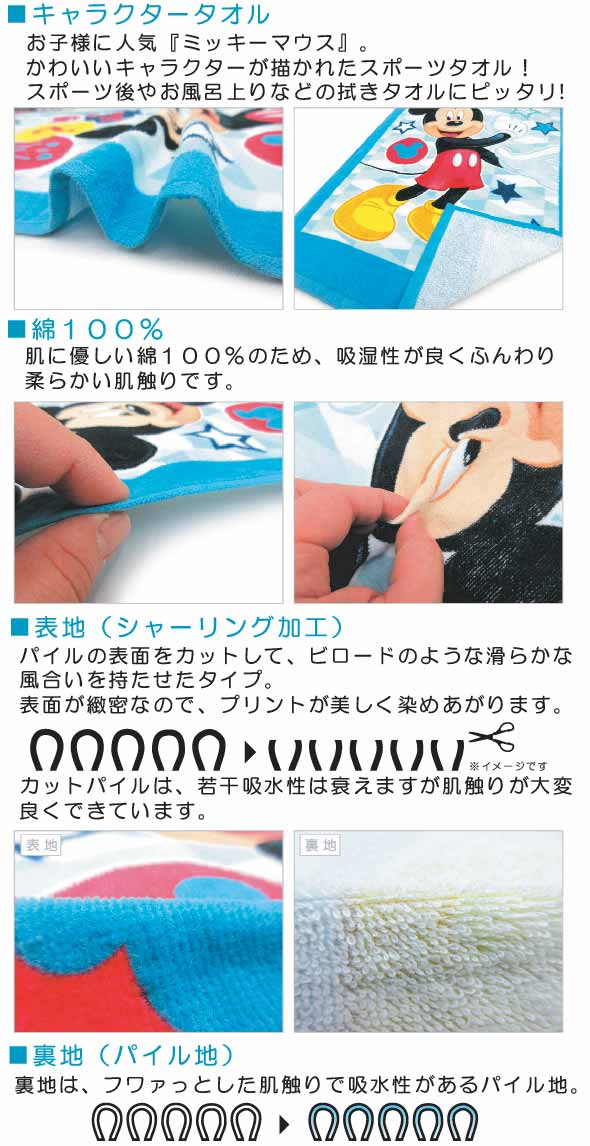 ●商品説明 キャラクタースポーツタオル ・キャラクター:ディズニー ・サイズ:約40×110cm ・素材:綿100% ●備考 ■綿100% 肌に優しい綿100%のため、通気性・吸湿性が良く柔らかい肌触りです。