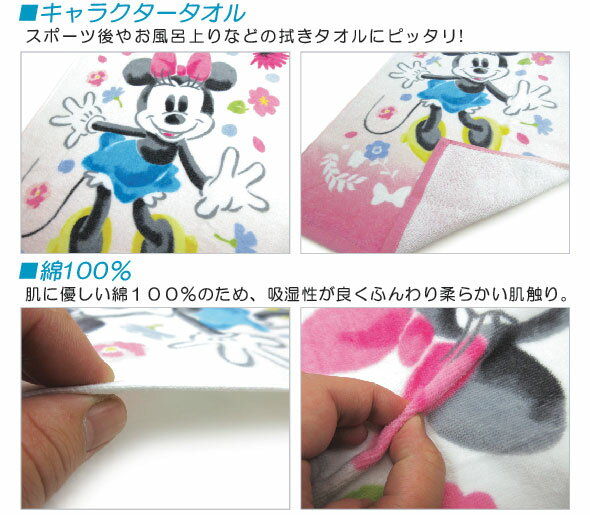 ●商品説明 キャラクタースポーツタオル ・キャラクター:ディズニー ミニーマウス ・サイズ:約40×110cm ・素材:綿100% ●備考 ■綿100% 肌に優しい綿100%のため、通気性・吸湿性が良く柔らかい肌触りです。