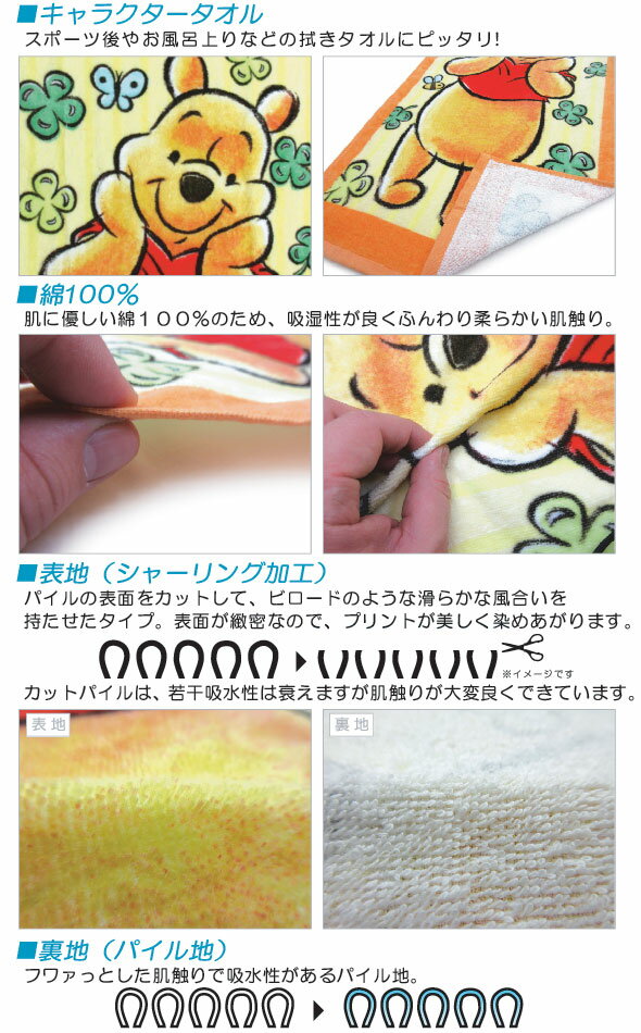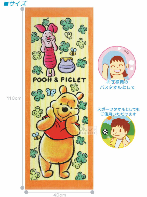 ●商品説明 キャラクタースポーツタオル ・キャラクター:ディズニー くまのプーさん ・サイズ:約40×110cm ・素材:綿100% ●備考 ■綿100% 肌に優しい綿100%のため、通気性・吸湿性が良く柔らかい肌触りです。