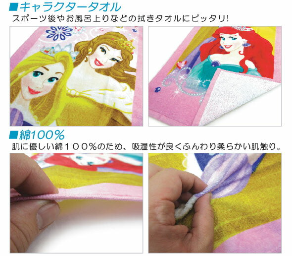 ●商品説明 キャラクタースポーツタオル ・キャラクター:ディズニー プリンセス ・サイズ:約40×110cm ・素材:綿100% ●備考 ■綿100% 肌に優しい綿100%のため、通気性・吸湿性が良く柔らかい肌触りです。